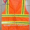 Áo lưới phản quang cam 3m có dây phản quang màu xanh chuối ở những vị trí quan trọng. Áo lưới quản quang rất tiện lợi cho công nhân công trình đựng vật dụng thoải mái.