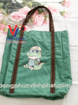 Về logo được in sắc nét, đều màu, logo được in với máy móc hiện đại và mực tốt loại 1 nên không lo bị bong tróc. Do nền vải của túi màu xanh biển in logo màu vàng càng làm cho thương hiệu của trường nổi bật hơn.