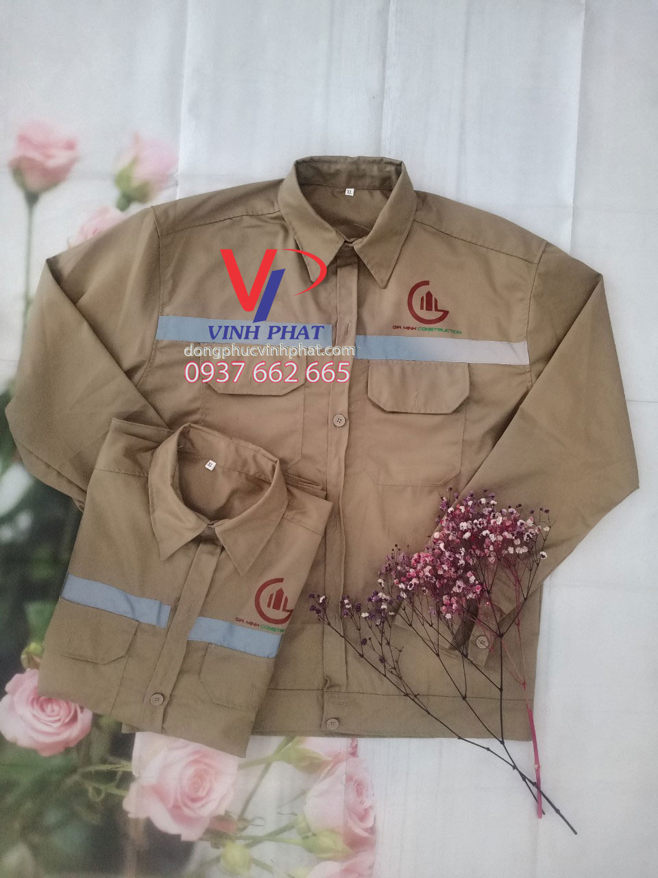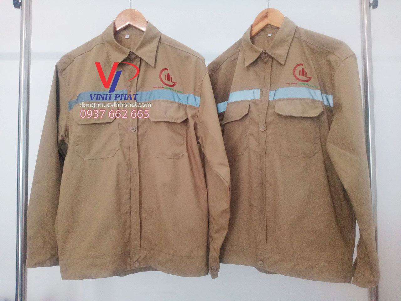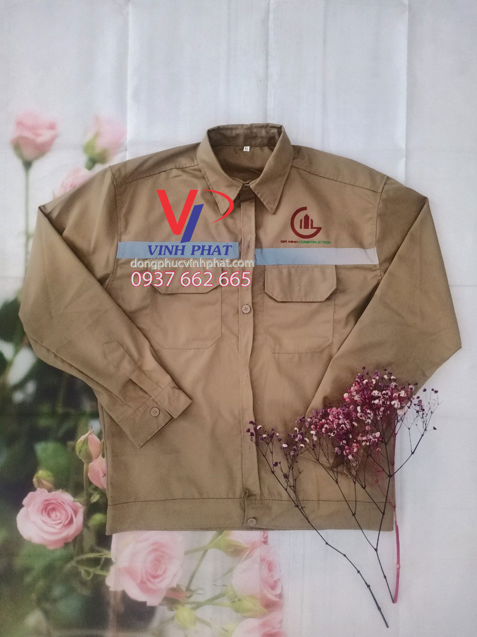 – Về màu sắc: Áo có màu sắc nâu. Màu này được lựa chọn do có gam màu tối, nếu bị dính bẩn cũng khó quan sát, ngoài ra nó cũng thể hiện sự mạnh mẽ, tính ổn định và chuyên nghiệp. Thêm vào đó là việc in logo công ty trên ngực áo cũng giúp lan tỏa thương hiệu đến khách hàng và mọi người.