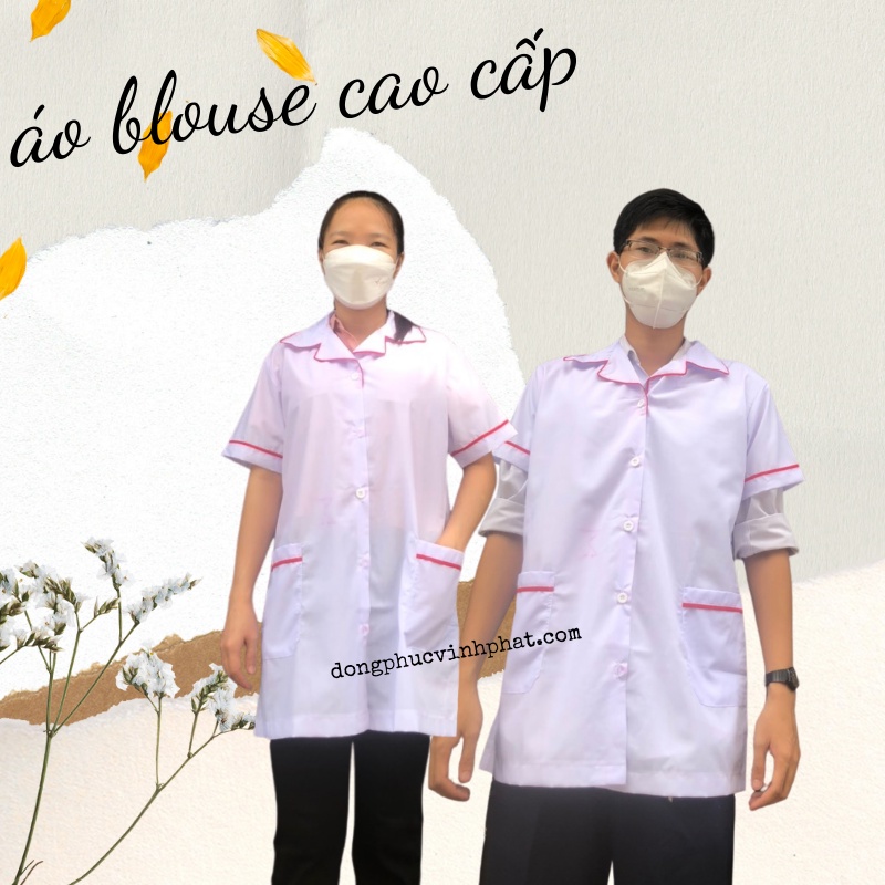 Áo blouse y tá, điều dưỡng, dược sĩ viền xanh, đỏ may sẵn