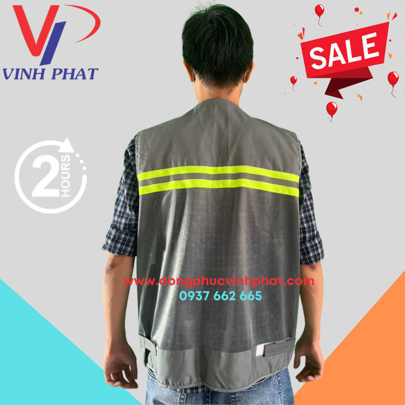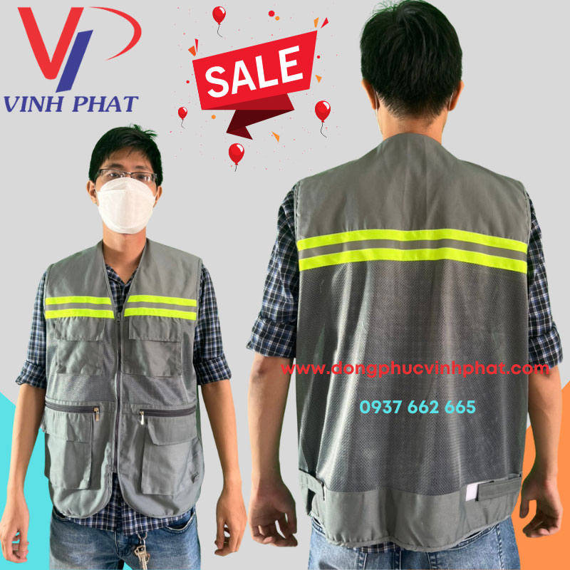 1. Các điểm đáng chú ý ở chiếc áo đồng phục gile công trường màu xám ghi