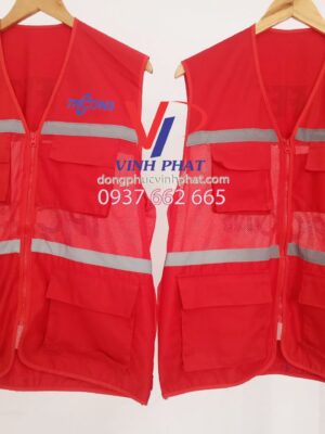 Áo gile kỹ thuật màu đỏ phản quang bảo hộ lao động công trường