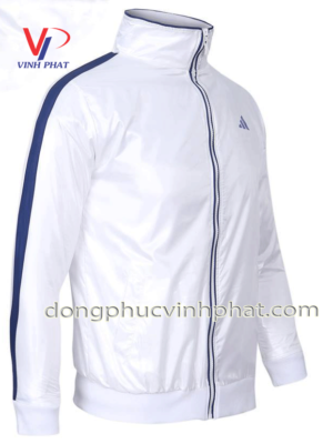 Xưởng may áo khoác đồng phục xanh – trắng với thiết kế trẻ trung năng động và phù hợp với nhiều lứa tuổi. Với đội ngũ sản xuất được trau dồi, cập nhật kỹ năng liên tục giúp Đồng Phục Vĩnh Phát tạo ra được sản phẩm tinh tế, sắc xảo về đường chỉ may và đáp ứng tốt về thời gian giao hàng.
