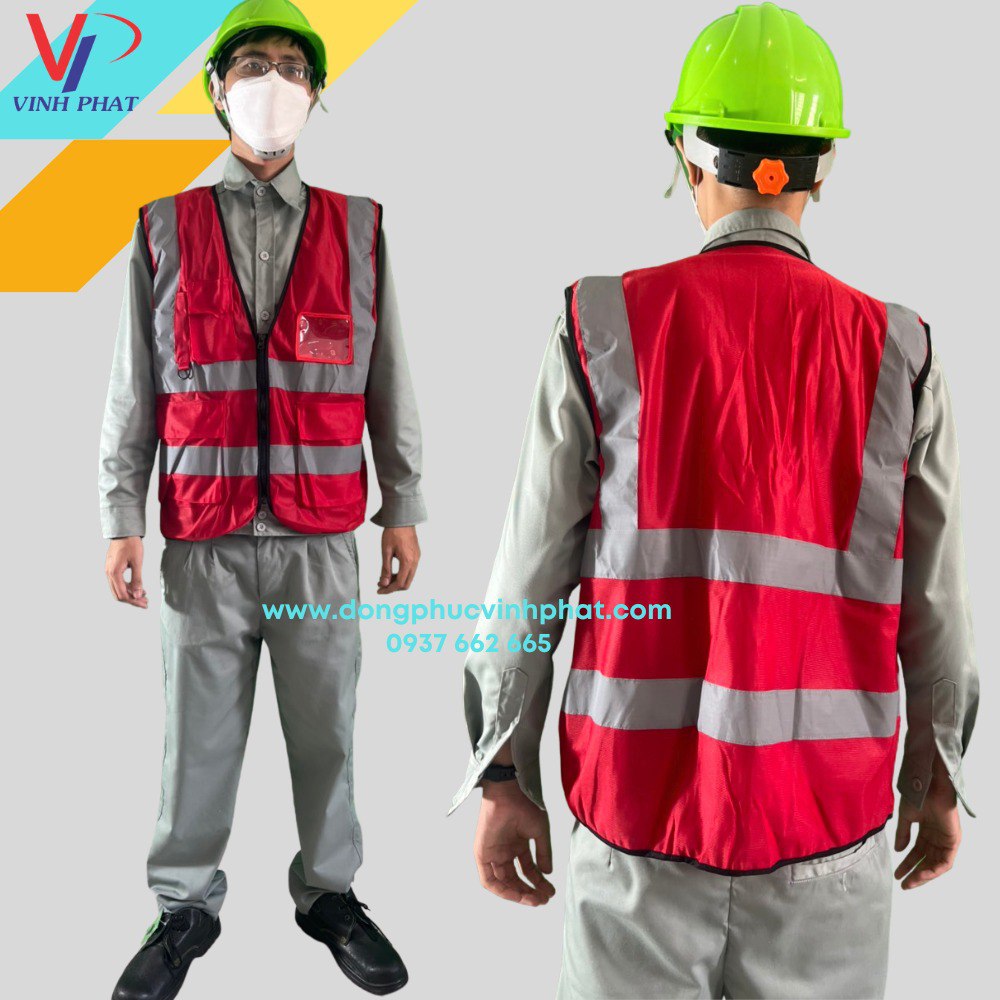 Với dạng túi nắp với kích thước lớn nhỏ cho phép người mặc đựng các vật dụng lớn nhỏ khác nhau tùy công việc. Phần dây kéo chắc chắn giúp cố định chiếc áo và giữ dáng áo ngay thẳng không bị lệch trong lúc mặc, vận động và di chuyển đáp ứng đầy đủ các tiêu chuẩn bảo hộ lao động hiện nay. Áo có màu đỏ đô và phần dây kéo đen tạo độ tương phản vừa đủ để tạo sự chú ý và thu hút ánh nhìn của người khác, việc này cũng tăng khả năng nhận diện và quan sát từ xa đề phòng những trường hợp xấu cho người lao động.