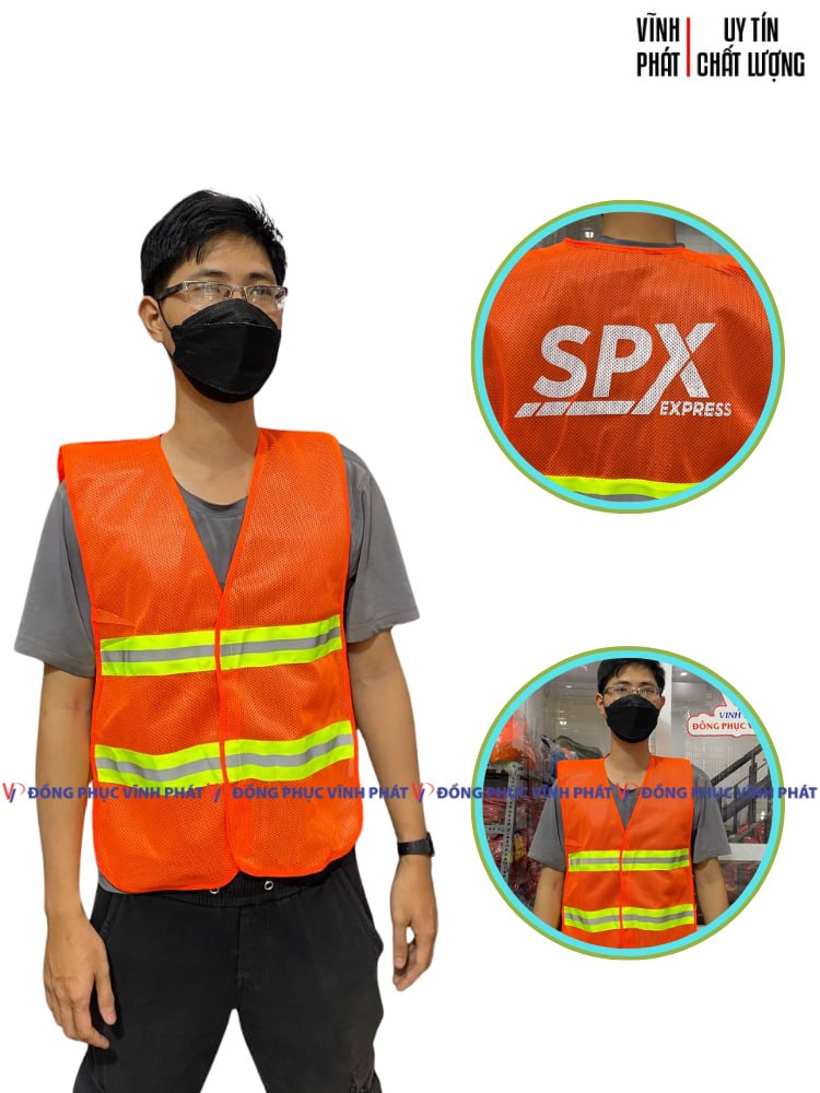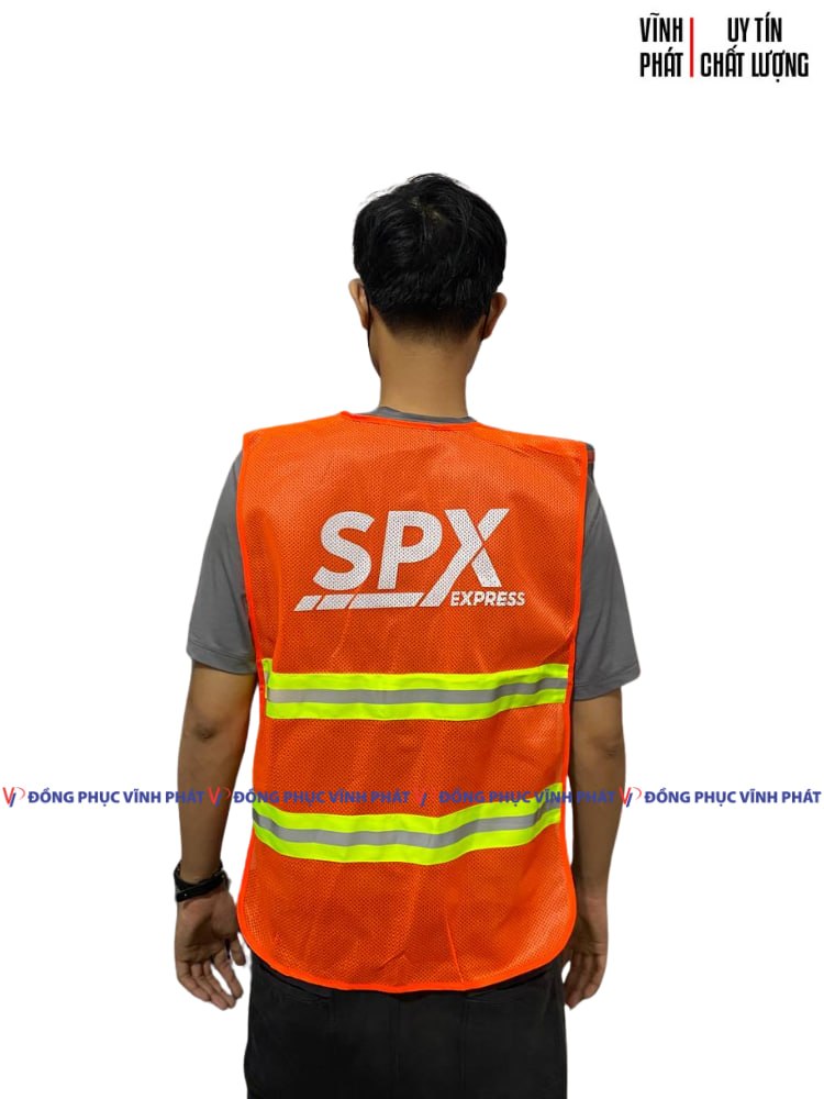 Áo lưới phản quang công nhân thun 2 bên màu cam in logo SPX Express | Hàng sẵn nhiều sỉ lẻ giao toàn quốc – Đồng Phục Vĩnh Phát – Zalo/ Hotline 0966 261 769 – 0981 552 465