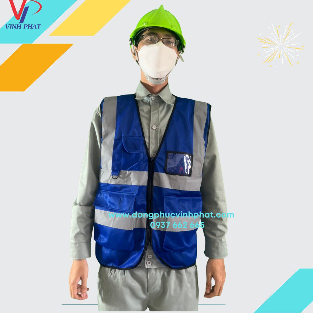 Áo phản quang là tên gọi chung của nhiều loại áo có tác dụng phản xạ lại ánh sáng khi bị chiếu vào, với nhiều hình dạng khác nhau như áo gile, áo lưới, áo khoác, áo dây,….Tất cả đều được gắn dây phản quang xung quanh hình thành nên các tên gọi khác nhau. Và trong bài viết này, chúng tôi – Cơ sở may mặc Vĩnh Phát muốn giới thiệu đến khách hàng chiếc áo phản quang lưới cao cấp bảo hộ màu xanh dương. Sản phẩm này hiện là mặt hàng có sẵn và đang được chúng tôi cung cấp với số lượng lớn ra thị trường tại TP HCM và còn nhiều tỉnh thành trên khắp cả nước nếu quý khách có nhu cầu đặt mua.