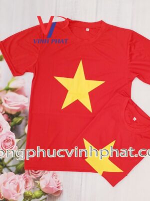 – Hơn nữa áo thun cờ đỏ sao vàng còn là một trang phục không thể thiếu và đặc biệt quan trọng trong các dịp lễ lớn và sự kiện trọng đại của đất nước như ngày tết nguyên đán, 30/4 -1/5 hoặc ngày quốc khánh 2/9,…Trong những thời điểm và khoảnh khắc lịch sử đó thì chiếc áo thun cờ đỏ sao vàng chính là một minh chứng cho lòng tự hào về quê hương, đất nước và con người Việt Nam. Chiếc áo tạo một niềm tin, thể hiện khát vọng vươn xa và tương lai phát triển bền vững của đất nước.
