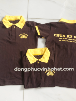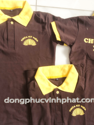 Áo thun đồng phục được thiết kế với dạng cổ áo là áo cổ bẻ tạo sự thanh lịch và trưởng thành đúng với nhu cầu sử dụng cho chùa. Ngoài ra áo còn được thiết kế bo thun ở tay áo bo sát bắp tay nên các bạn thoải mái giơ tay lên cao. Áo thun đồng phục được Vĩnh Phát may với mật độ chỉ chắc chắn, đường may đều và đẹp đảm bảo các bạn sẽ hài lòng ngay từ cái nhìn đầu tiên.