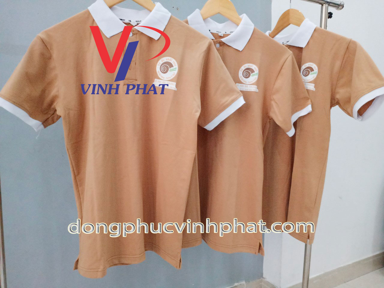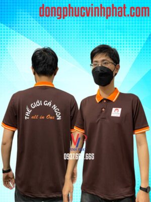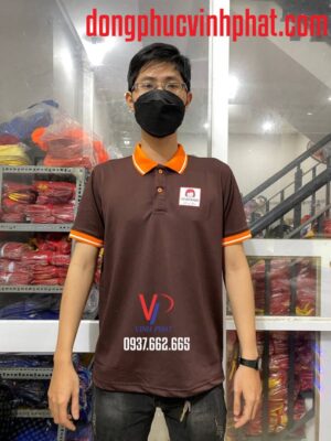 Áo thun quán cafe màu cafe được may với chất liệu vải cá sấu cao cấp.