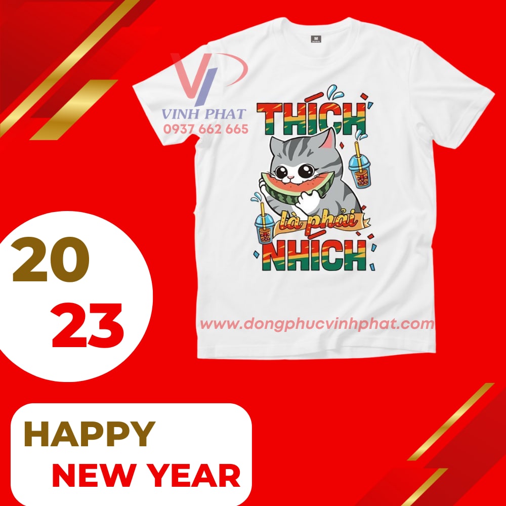 Năm nào cũng vậy, khi thời điểm sắp đến Tết thì nhu cầu mua sắm các loại quần áo trang phục luôn được mọi người quan tâm và hướng đến nhiều nhất do đây là một sản phẩm không thể thiếu trong đời sống hằng ngày. Hơn nữa, để chạy theo thị hiếu khách hàng thì nhiều mẫu quần áo bán Tết được in vô số họa tiết đẹp mắt, dễ thương để thỏa mãn yêu cầu cũng như sở thích của người mặc. Chính vì thế nên trong bài viết hôm nay, Xưởng may đồng phục Vĩnh Phát xin giới thiệu đến nhiều mẫu áo thun Tết 2023 ấn tượng được chúng tôi thiết kế và sản xuất. Vừa đem lại một phong cách thời trang năng động, trẻ trung và hiện đại cộng với những họa tiết sắc nét đã giúp tạo một vẻ hoàn mỹ cho người mặc trong dịp đi chơi Tết.