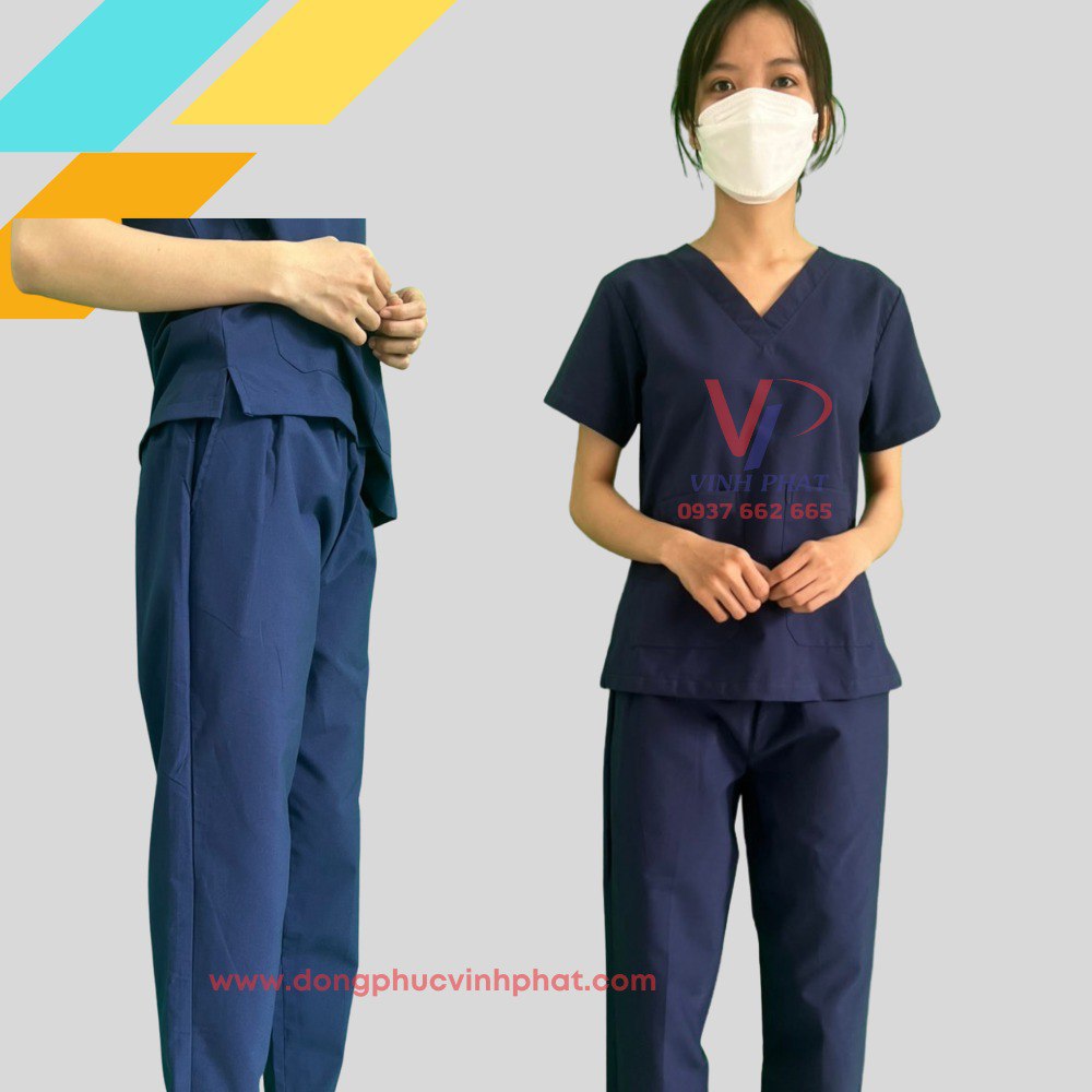 Bộ scrubs bác sĩ y khoa phẫu thuật là trang phục được thiết kế đặc biệt dành riêng cho các bác sĩ, kĩ thuật viên phòng mổ hoặc cho những nhân viên trong các thẩm mỹ viện và spa,….Do tính chất đặc thù của công việc nên bộ quần áo sẽ có những ưu điểm, hiệu quả và vai trò nhất định giúp đảm bảo các tiêu chuẩn an toàn cũng như tạo sự thoải mái và tâm lý yên tâm cho người mặc. Và hiện nay, dòng sản phẩm này đã và đang được Đồng phục Vĩnh Phát chúng tôi cung cấp với số lượng lớn với những mẫu mã khác nhau nổi bật nhất là bộ scrubs bác sĩ y khoa phẫu thuật cổ tim màu xanh đen vải cao cấp.