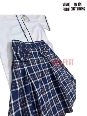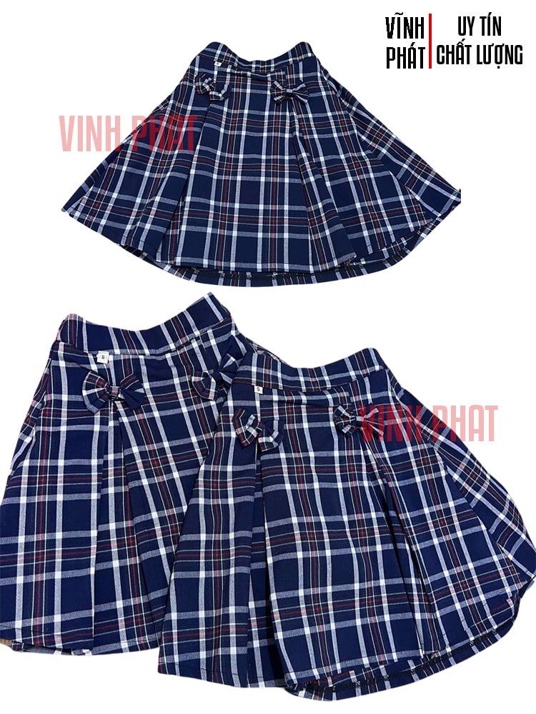 Màu sắc chuẩn đồng phục: Caro xanh đen thanh lịch, dễ phối với áo sơ mi trắng, áo phông, hay cardigan.