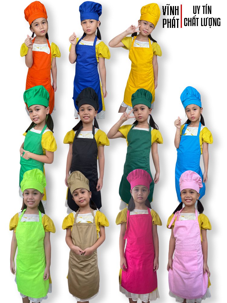 Combo Tạp Dề & Nón Bếp Cho Bé Yêu – Đa Màu Cực Đẹp – Học Chơi Song Hành, Hàng Sẵn Nhận Nhanh Tại Shop Vĩnh Phát