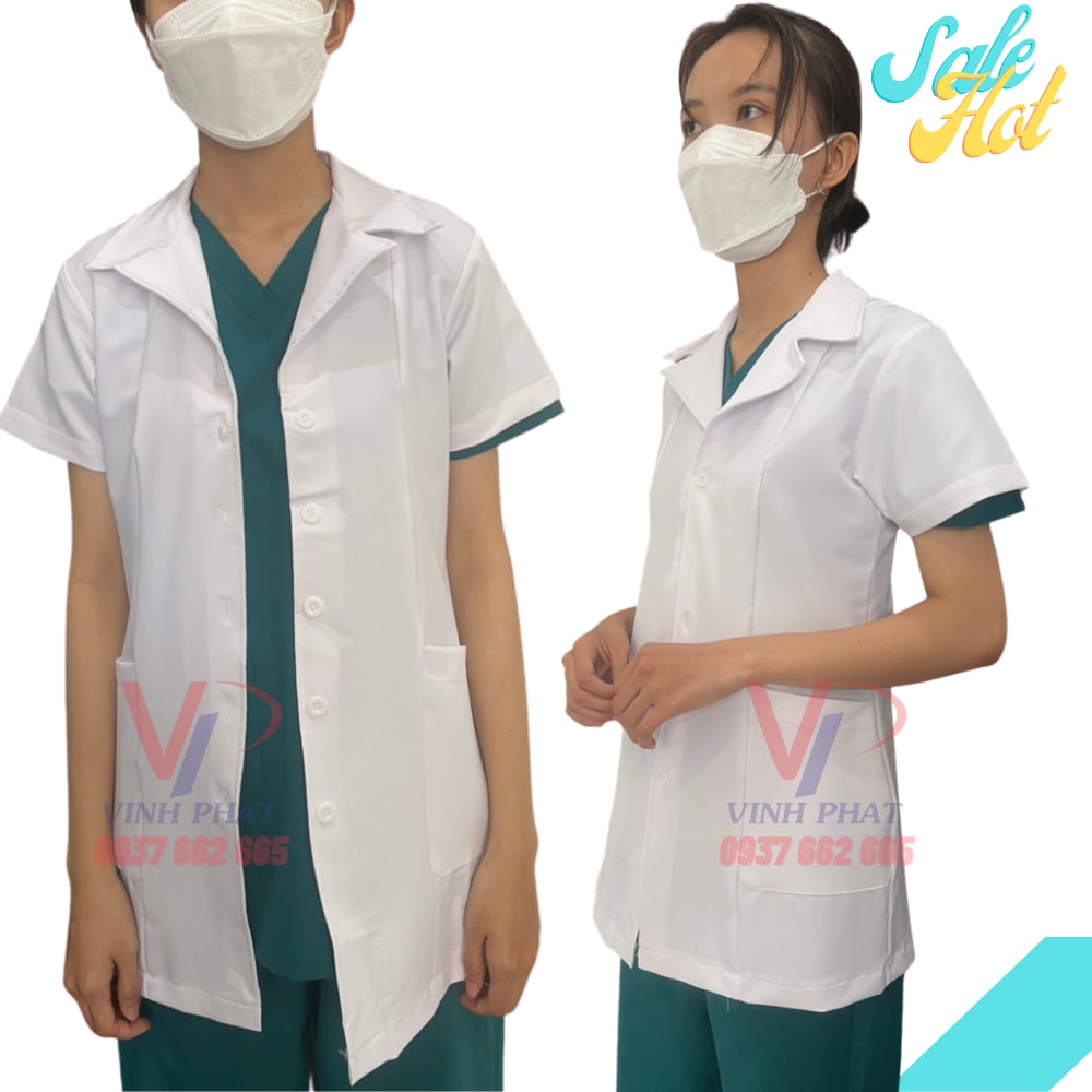 Áo được thiết kế và có kiểu dáng đơn giản, không phức tạp với màu sắc chính là màu trắng, tay ngắn giúp các y tá có thể thực hiện thao tác chuyên môn nhanh chóng và dễ dàng