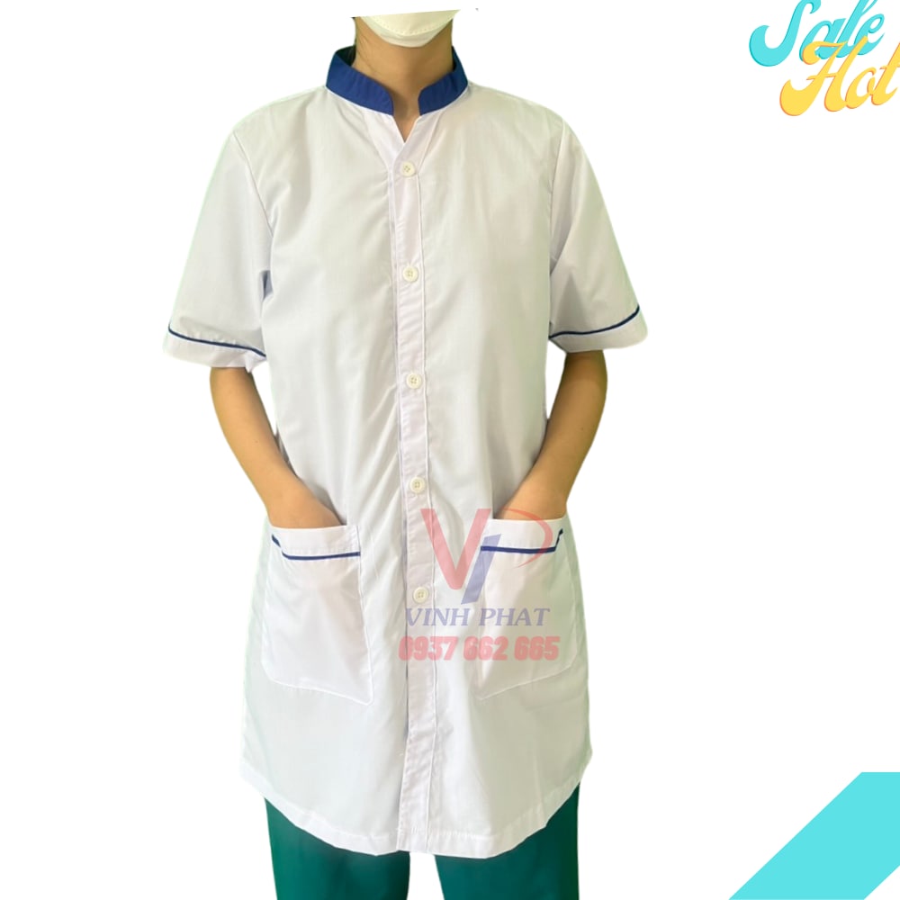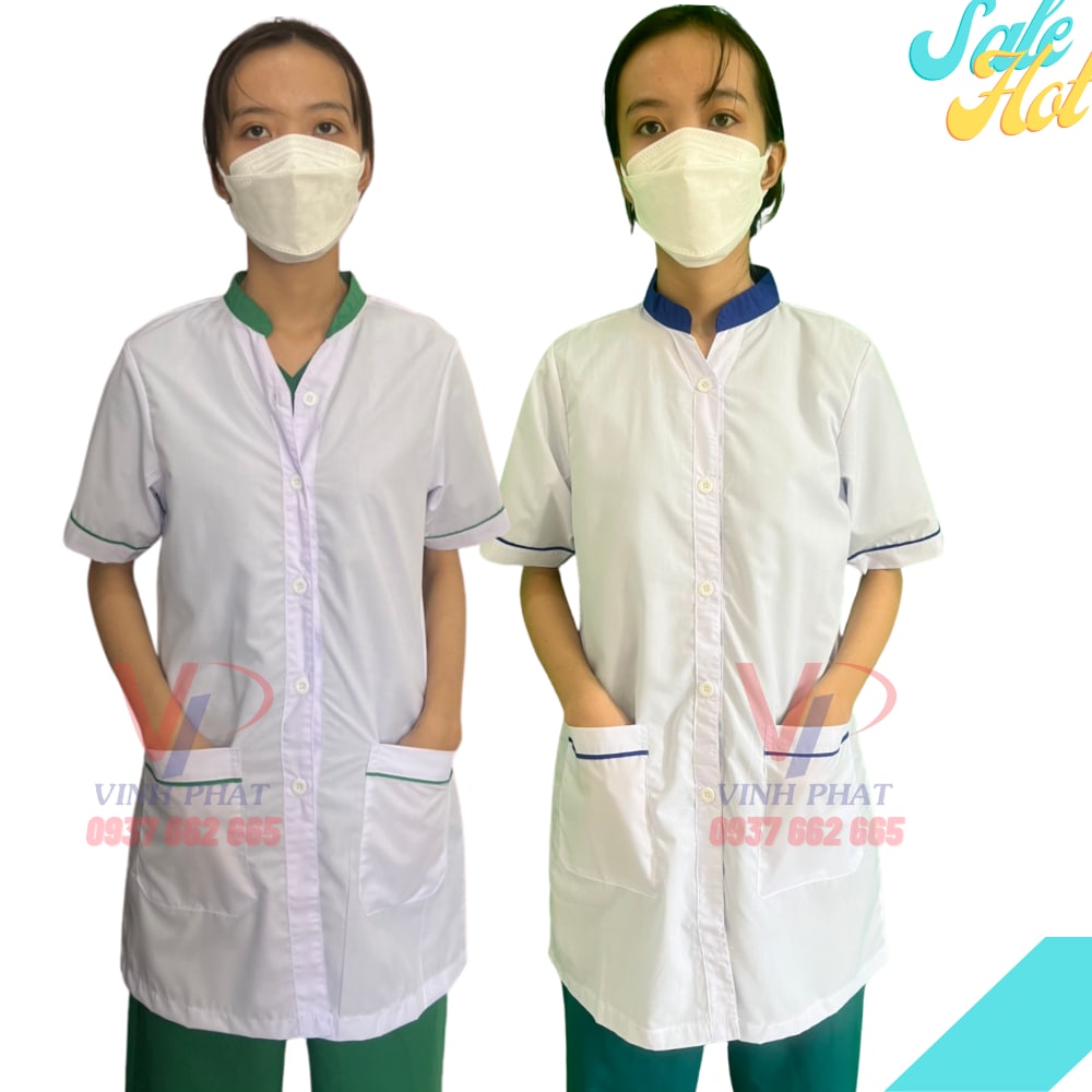 – Đồng phục, áo blouse điều dưỡng cổ tàu phối viền