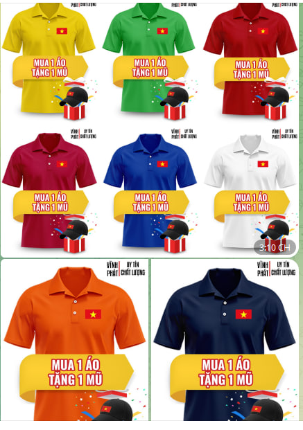 Đón Chào Năm Mới 2026 – Combo Áo Polo Đủ Màu + Nón Kết In Lá Cờ Việt Nam | Shop Vĩnh Phát – Zalo 0966 261 769