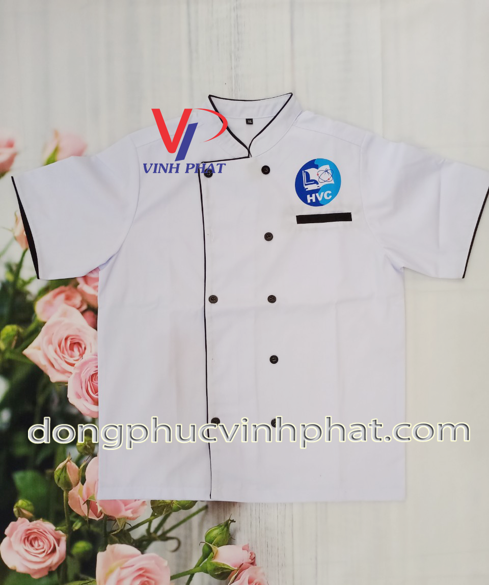 Đồng phục áo bếp HVC được công ty MAY VĨNH PHÁT thiết kế và may mẫu miễn phí, sản phẩm áo bếp đồng phục bếp được may tỉ mỉ và cẩn thận, in logo sắc nét nhiều màu sắc.