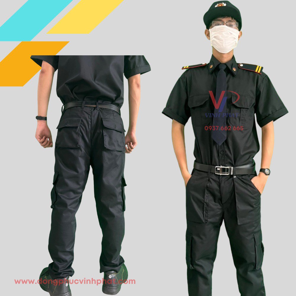 – Đồng phục bảo vệ đen tay ngắn: Trang phục này thường được may cho nhân viên bảo vệ ở những địa điểm làm việc hay những nơi giải trí lớn sang trọng, sầm uất. Chính vì thế điểm đặc biệt ở bộ đồng phục chính là phần màu sắc. Màu đen vừa thể hiện tính mạnh mẽ, nâng cao tính chuyên nghiệp và đồng thời tạo dáng vẻ sang trọng, lịch lãm và cao cấp cho người mặc. Không những thế việc sử dụng màu đen còn tạo sự khác biệt mới lạ nhằm gây ấn tượng mạnh với người khác ngay từ lần đầu tiên.