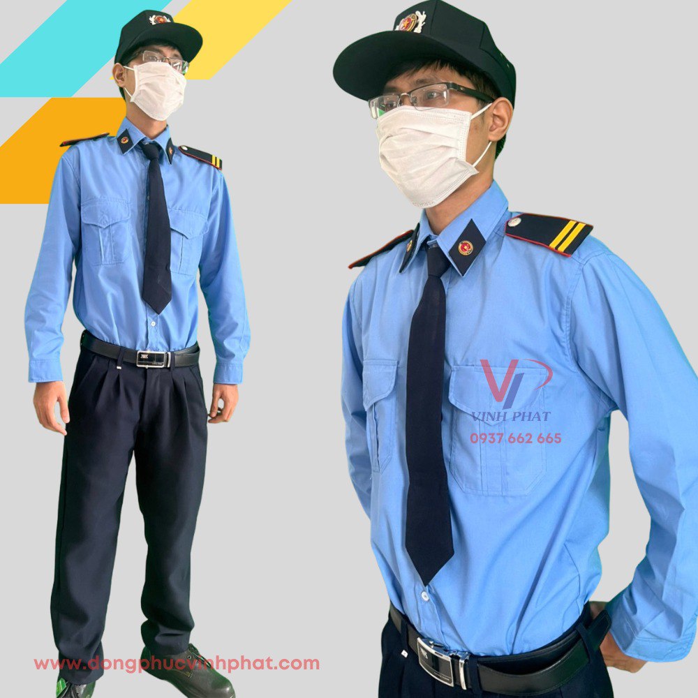 – Kiểu dáng: Đồng phục bảo vệ xanh tay dài