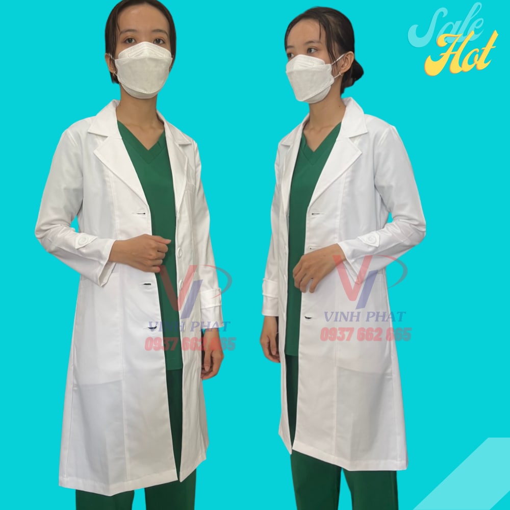 Đây là biểu tượng và là hình ảnh tiêu biểu nhất của trang phục y bác sĩ từ trước đến nay. Chiếc áo blouse trắng này thường được khoác ngoài những bộ quần áo trang phục thông thường của người bác sĩ. Với thiết kế dạng thân dài hoặc ngắn tùy loại để phù hợp và thuận tiện trong quá trình khám chữa bệnh. Áo có kiểu dáng cổ bẻ, chiều dài áo ngang gối, được thiết kế dài tay. Áo có hàng cúc trắng phía trước, 1 túi ngực, 2 túi hông để bác sĩ có thể đựng các dụng cụ y tế, sau lưng có xẻ rãnh ngang tới ngang mông mang lại sự trang nhã, hợp thời trang và đảm bảo tính thẩm mỹ cao.