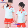 Đến với dongphucvinhphat.com quý khách sẽ tham khảo được nhiều mẫu đồng phục mầm non của bách việt của hệ thống trường mầm non factrackids dành cho học sinh đến trường. Được may bằng vải cotton có cổ áo và viền áo màu xám ghi kết hợp logo in với nhiều màu sắc nổi bật của logo trường mầm non bách việt.