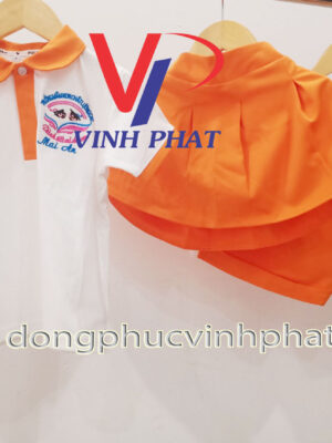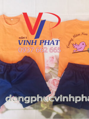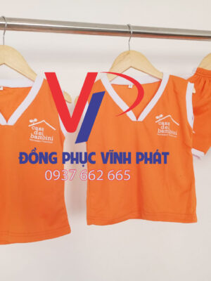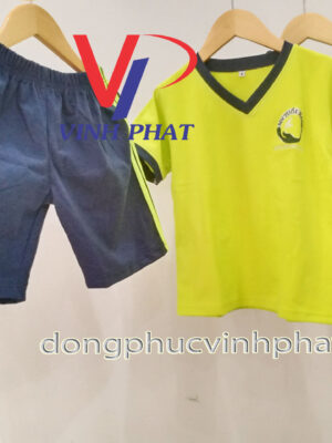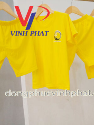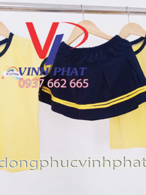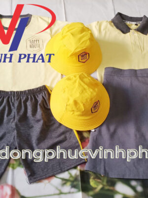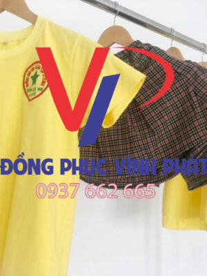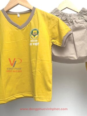 Đồng phục mầm non cho bé cổ tim màu vàng tươi dễ thương đẹp mắt