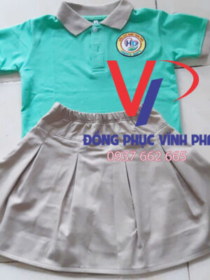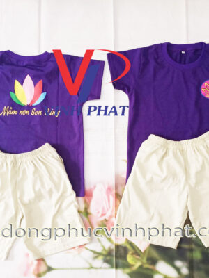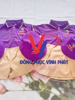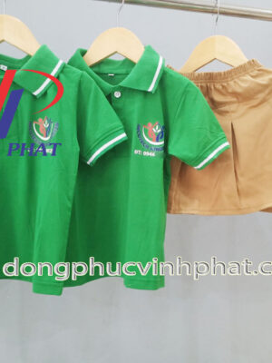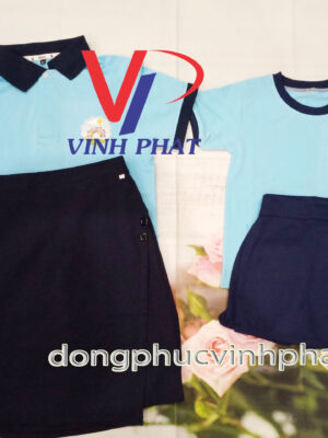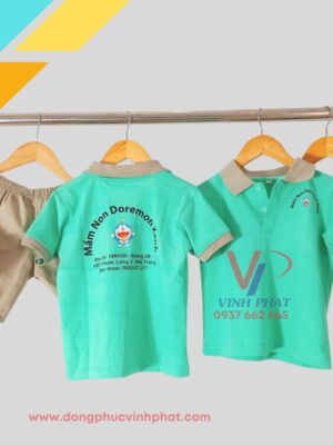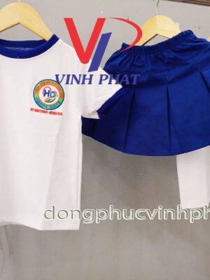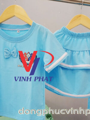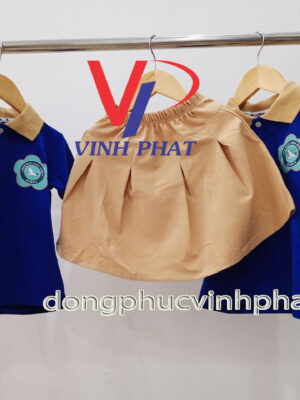 Đồng phục mầm non mẫu đẹp cao cấp cổ bẻ màu xanh dương dành cho bé