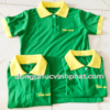 Về phần áo thun quán cafe được may với hai màu là xanh và vàng. Chiếc áo được công ty may Vĩnh Phát chúng tôi may bằng chất liệu vải cotton với độ mềm mịn và khả năng thấm hút mồ hôi cực tốt. Áo được thiết kế phối viền tay và cổ áo màu đen rất năng động và cá tính. Về logo, mặt trước logo được thêu phía bên ngực trái màu đen với đường chỉ thêu chắc chắn và sắc nét. Mặt sau áo được công ty may Vĩnh Phát chúng tôi in số điện thoại và địa chỉ để quảng bá thương hiệu hãng trà sữa.