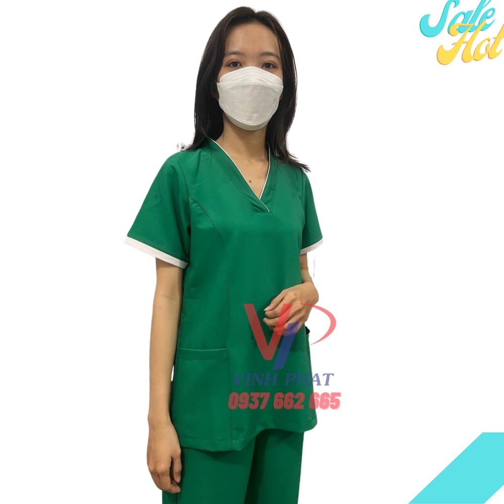 – Kiểu dáng: Đồng phục spa màu xanh lá