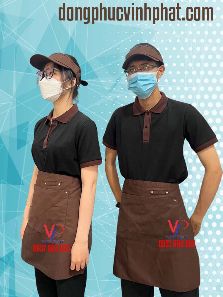 Đồng thời tạp dề màu vàng nghệ dễ kết hợp với áo thun đồng phục, giúp cho nhân viên khi mặc cảm thấy thoải mái và năng động.