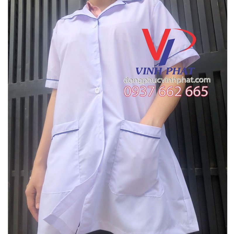Đã có nhiều năm kinh nghiệm hợp tác với rất nhiều những doanh nghiệp và đơn vị lớn, Công ty may đồng phục Vĩnh Phát luôn đem lại cho khách hàng mẫu sản phẩm đồng phục y tá điều dưỡng các loại như áo blouse trắng phối viền xanh, áo blouse bác sĩ tay ngắn, áo blouse dược sĩ – y tá với những chi tiết đẹp mắt, loại vải được sử dụng cũng là loại vải kate silk cao cấp, càng thể hiện được nét thẩm mỹ . Do đó, nếu lựa chọn được mẫu đồng phục y tá điều dưỡng nào bạn có thể chủ động liên hệ với đội ngũ tư vấn viên để được biết rõ hơn về những chính sách ưu đãi của Vĩnh Phát nhé !
