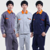 Đồng phục công nhân với kiểu dáng dài tay, cổ bẻ Danton, có túi chuyên dụng đựng dụng cụ.