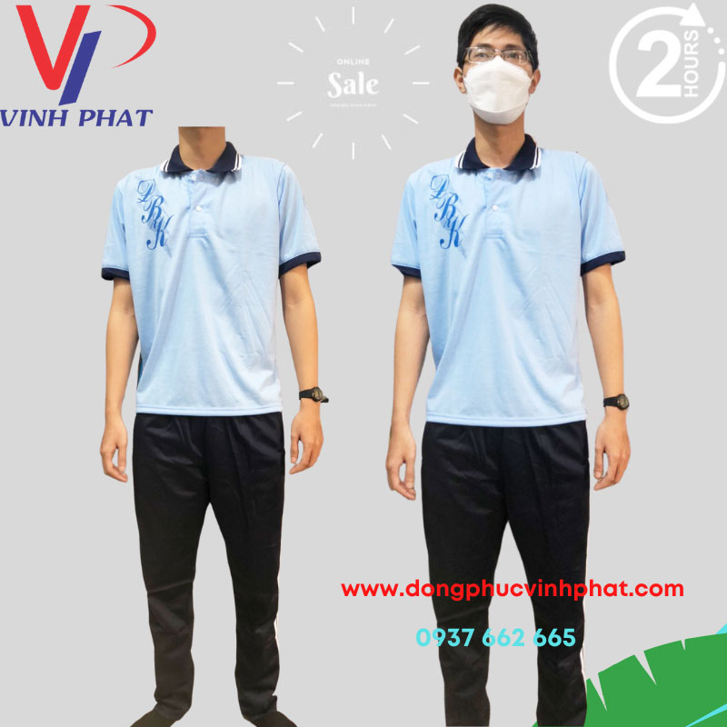 – Màu sắc: Không nổi bật mà là sự kết hợp hài hòa giữa cùng một gam màu nhưng có sắc thái khác nhau gồm đậm và nhạt. Áo xanh dương nhạt và quần màu xanh đậm tạo một phong cách đơn giản nhưng đẹp mắt, đồng thời các vị trí dễ nhìn như cổ áo, cổ tay áo đều được may phối hợp giống với màu sắc quần bên dưới, đặc biệt chữ ĐBK được may bên phải áo nhằm tạo sự nhận diện ngay về tên trường ngay từ lần tiếp xúc đầu tiên. Điều này giúp lan tỏa hình ảnh, uy tín và chất lượng đào tạo của trường một cách rộng rãi đến với mọi người.