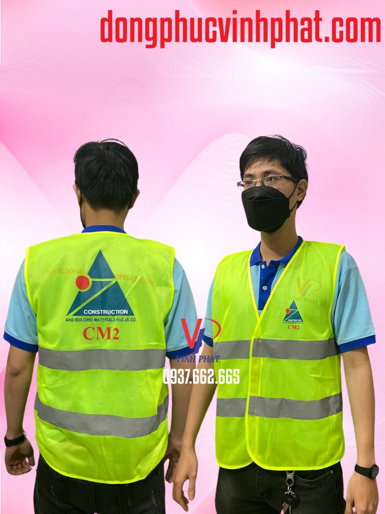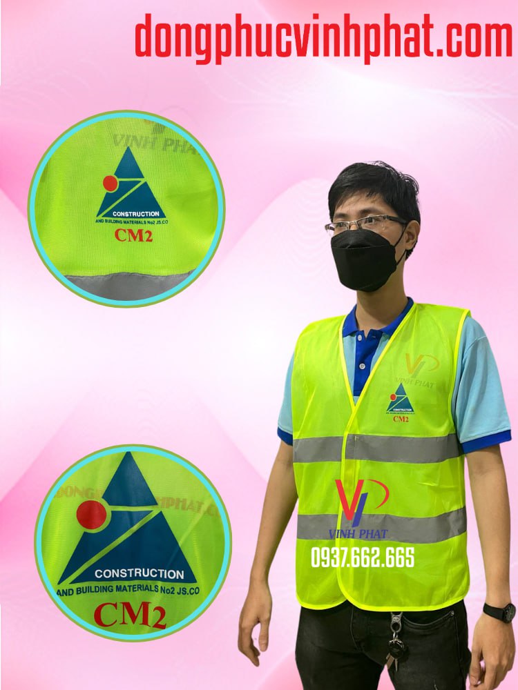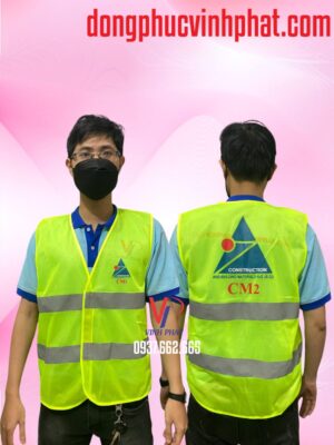 1. Áo Lưới PQ CM2 – May In Áo Lưới Phản Quang Cho Đội Thi Công | In Logo Theo Mẫu