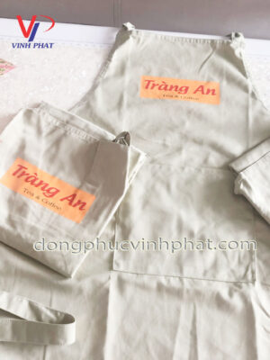 May tạp dề quán tràng an được thiết kế dạng yếm dài có tăng đưa ở cổ giúp điều chỉnh độ dài phù hợp với dáng người. Phía trước tạp dề có túi đắp rộng giúp dễ dàng đựng vật dụng cần thiết trong quá trình làm việc.