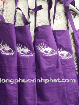 Dongphucvinhphat.com may Trên tạp dề có thêu logo với chỉ màu trắng mang đậm nét của Hoa Beauty Lase. Không thể thiếu đó là chiếc túi, túi được thiết kế rộng và sâu giúp cho người mặc có thể đựng các vật dụng cá nhân một cách dễ dàng.