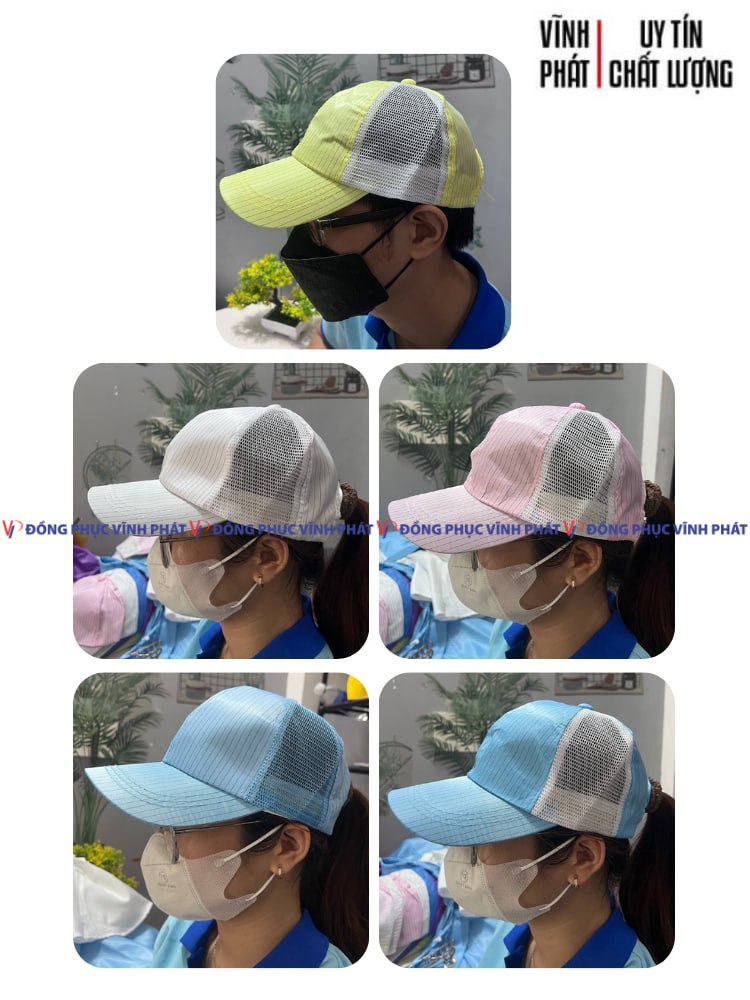 1. Mũ Lưỡi Trai Phối Lưới Các Màu KHỬ TĨNH ĐIỆN Phòng Sạch Cho Công Nhân