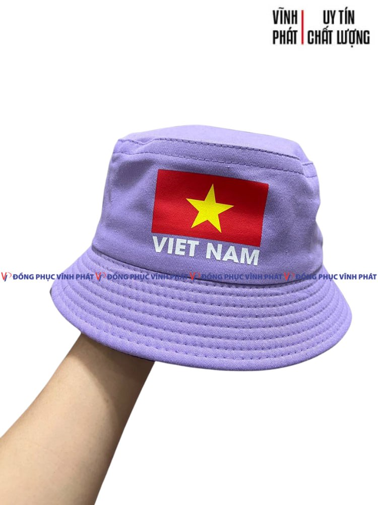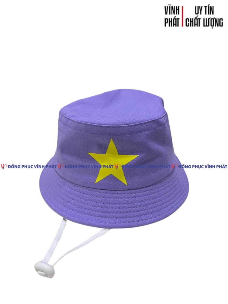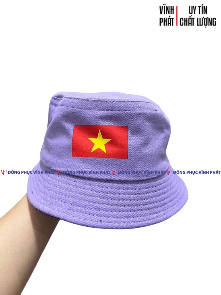 1. MŨ NÓN BÈO BUCKET MÀU TÍM NGƯỜI LỚN – IN LOGO CỜ VIỆT NAM NGÔI SAO VÀNG