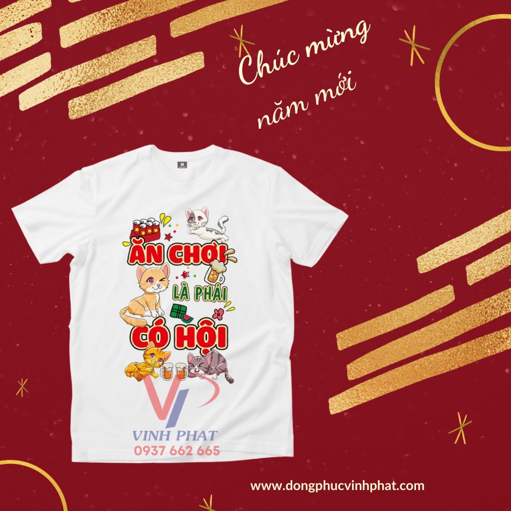 Khi thời gian trôi dần về cuối năm cũng là lúc thị trường hàng hóa nhất là quần áo trang phục trở nên sôi động nhất với hàng loạt những mặt hàng sản phẩm được sản xuất ồ ạt nhằm cung ứng đầy đủ cho người tiêu dùng trong dịp lễ Tết. Trong đó dòng áo thun Tết là một trong những mặt hàng được quan tâm nhiều nhất hiện nay với những kiểu dáng đa dạng, màu sắc họa tiết cùng những câu chúc ý nghĩa được in ấn một cách chi tiết và vô cùng đẹp mắt. Thông qua những sản phẩm này, chúng tôi – Đồng phục Vĩnh Phát xin giới thiệu và cung cấp dịch vụ nhận in hình, họa tiết lên áo thun Tết 2023 theo yêu cầu giá rẻ tại TP HCM, Bình Dương để có thể đem đến cho khách hàng những mẫu áo ưng ý nhất, đảm bảo chất lượng và số lượng theo yêu cầu với giá thành hợp lý và phải chăng.
