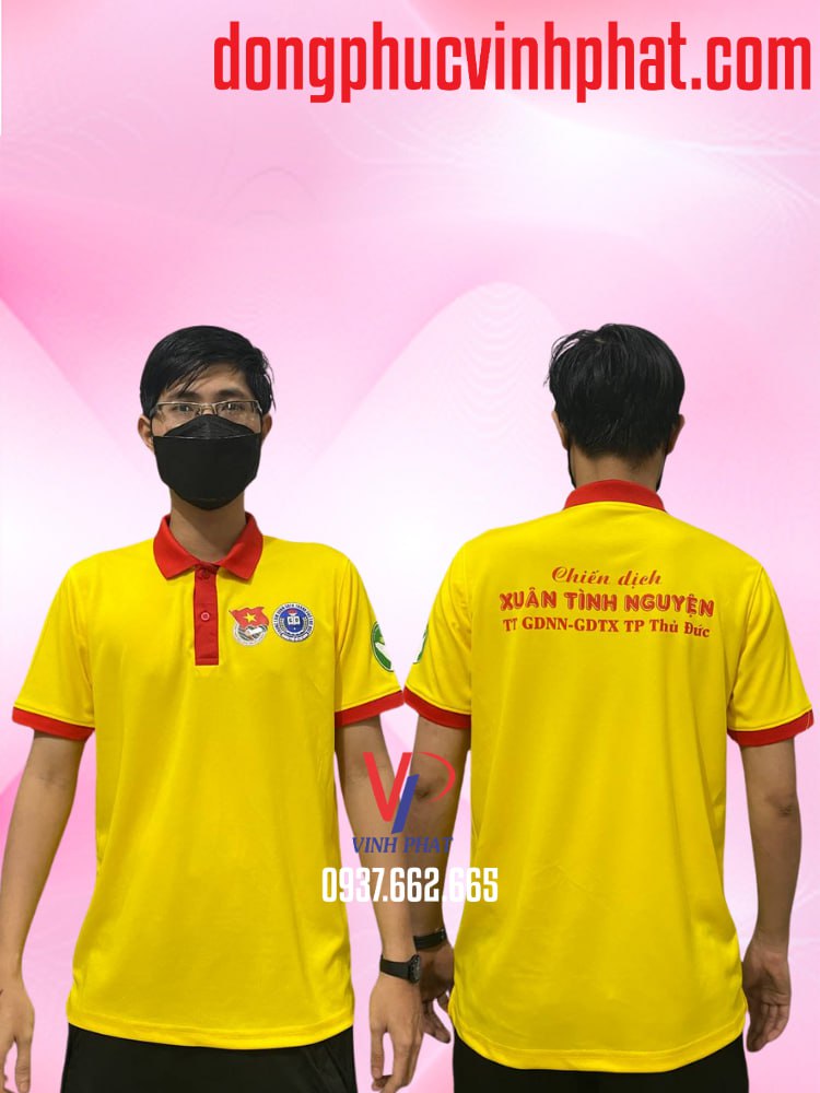 Đặt may áo thun theo yêu cầu với form chuẩn, logo chuẩn đẹp chính xác và chất liệu cao cấp. Vĩnh Phát cung cấp nhiều dịch vụ: đồng phục công ty, áo nhóm, áo sự kiện, quà tặng… Phong cách riêng, chất lượng tuyệt đối. Với đơn Áo Thun Polo Vàng Xuân Tình Nguyện TP Thủ Đức