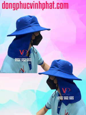 Chất liệu vải kaki dày dặn nhưng thấm hút mồ hôi tốt, tuy nón có kích thước lớn nữa nó cũng rất tiện dụng khi có thể gấp gọn cất đi rất nhanh chóng. Nón được in logo lớn nhận diện đơn vị ở mặt trước nón để mọi người có thể tiếp cận thấy rõ.