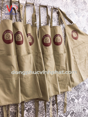 Với mẫu tạp dề quán cafe dành cho quán cafe nam coffee thì logo được in màu cafe rất hợp với quán.