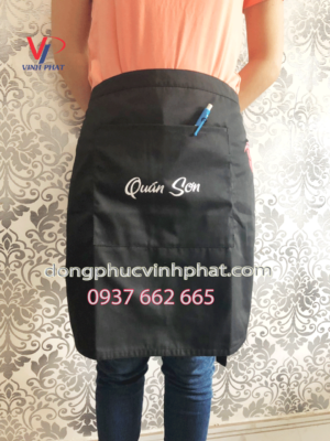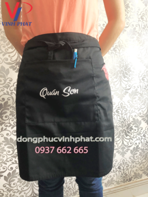 Đối với quán ăn thì tạp dề là một phụ kiện không thể thiếu. Tạp dề nhân viên phục vụ ngắn Quán Sơn sẽ là một lựa chọn hoàn hảo. Với tạp dề ngắn in logo 3 vị trí trông rất dễ thương và đáng yêu.
