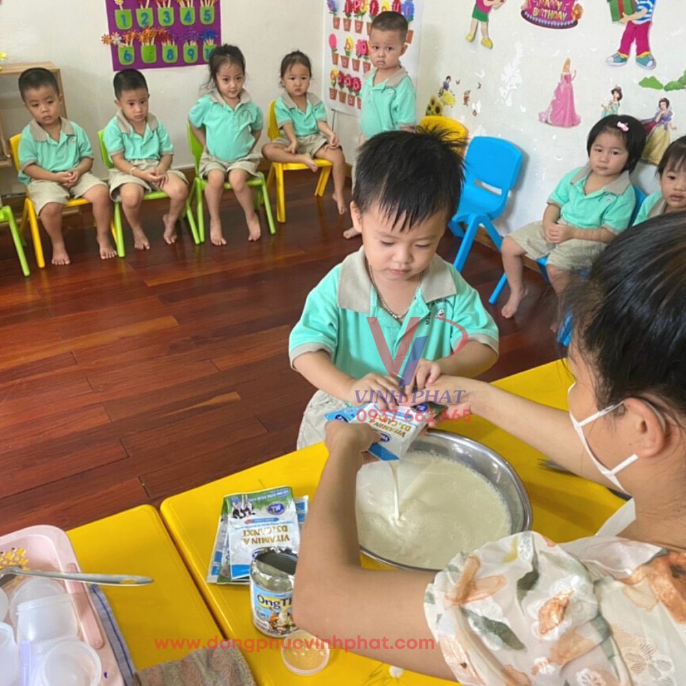 2. Vĩnh Phát chuyên nhận đặt may số lượng lớn đồng phục mầm non theo yêu cầu giá rẻ, chất lượng và uy tín