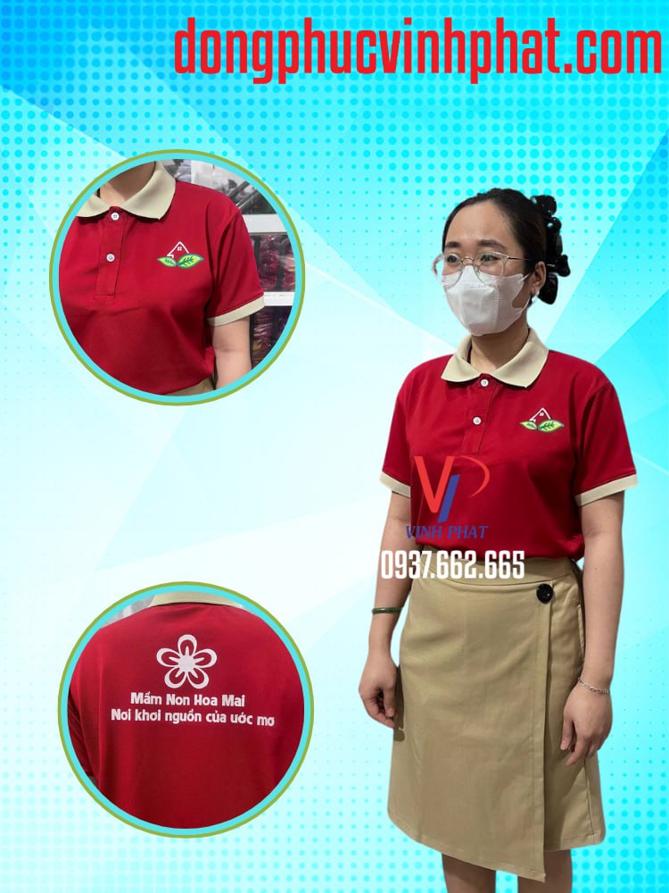 Về bộ đồng phục mầm non này, sử dụng hai tông màu gồm trắng và đỏ đô vừa đủ để tạo sự chú ý và quan sát dễ dàng cho các giáo viên mầm non. Thiết kế áo cổ bẻ tay ngắn phối viền cùng phần quần lưng thun có sự co giãn tốt thể hiện độ tinh tế và thẩm mỹ cao, kích thước vừa vặn tạo sự thoải mái, dễ chịu thuận tiện trong nhiều hoạt động học tập và vui chơi của các em. Đặc biệt sự kết hợp giữa bộ đồng phục mầm non và chiếc tạp dề in logo họa tiết đẹp mắt cùng chiếc nón bếp nhỏ nhắn trắng tinh dễ thương xinh xắn dành cho bé càng làm tăng thêm nét thẩm mỹ, dễ thương và sảng khoái cho các bé. Một sự chuẩn bị đơn giản và chu đáo nhưng lại tạo được một nét đẹp lớn cho các em trong quá trình hình thành và phát triển sau này của trẻ.
