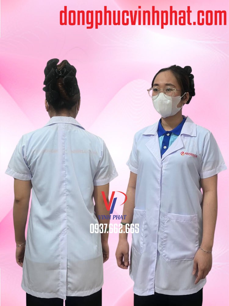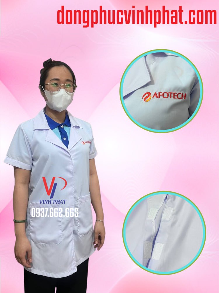 Vĩnh Phát tư vấn, thiết kế và may thêu áo blouse theo yêu cầu ngày càng được nhiều đơn vị quan tâm nhằm đảm bảo sự đồng bộ – thẩm mỹ – chất lượng vượt trội – Áo blouse trắng thêu logo Afotech