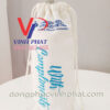 Túi vải canvas TÚI RÚT TQ Group đựng chai nước được công ty may Vĩnh Phát may bằng vải canvas in logo 2 vị trí bằng mực màu xanh nổi bật cho túi.